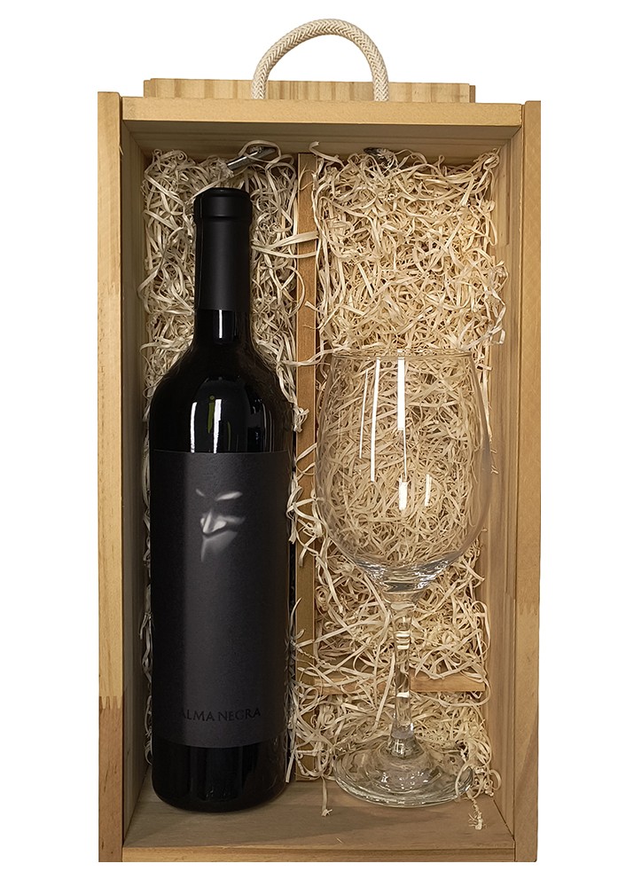 Estuche de Madera Alma Negra Blend + Copa de Wine is Art - Comprar regalos al mejor precio - espaciovino - Vinoteca online
